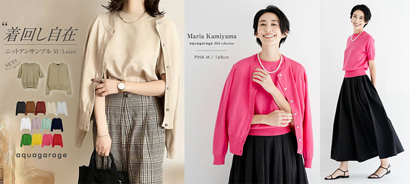 シンプルな半袖ニットと長袖カーデのセットで、オンオフ問わず活躍間違いなし!
